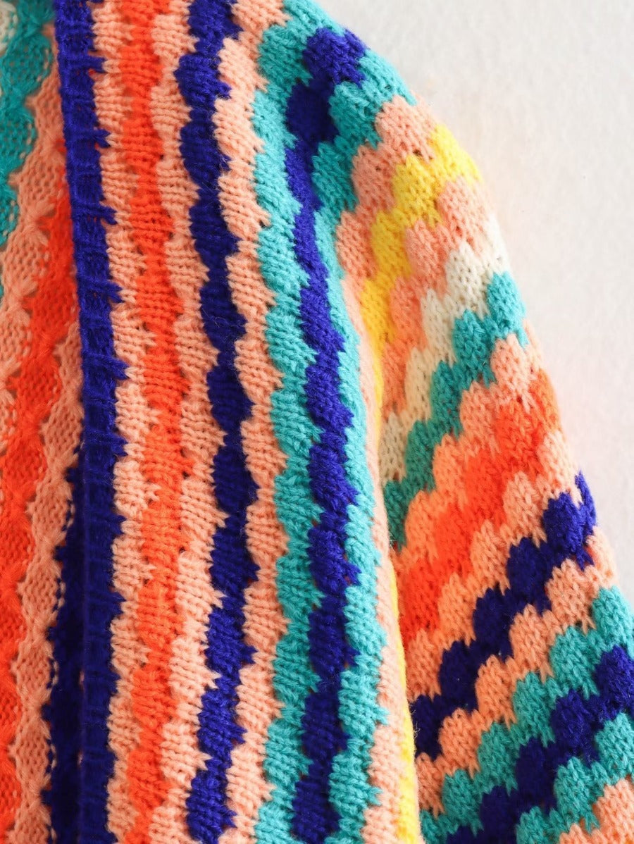 Autumn New Rainbow Bar Cardigan Long Sleeve